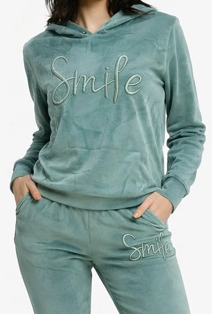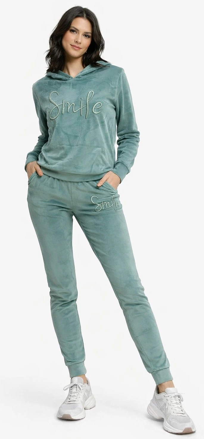 Dres damski welurowy z kapturem zielony (rozm. S/M)