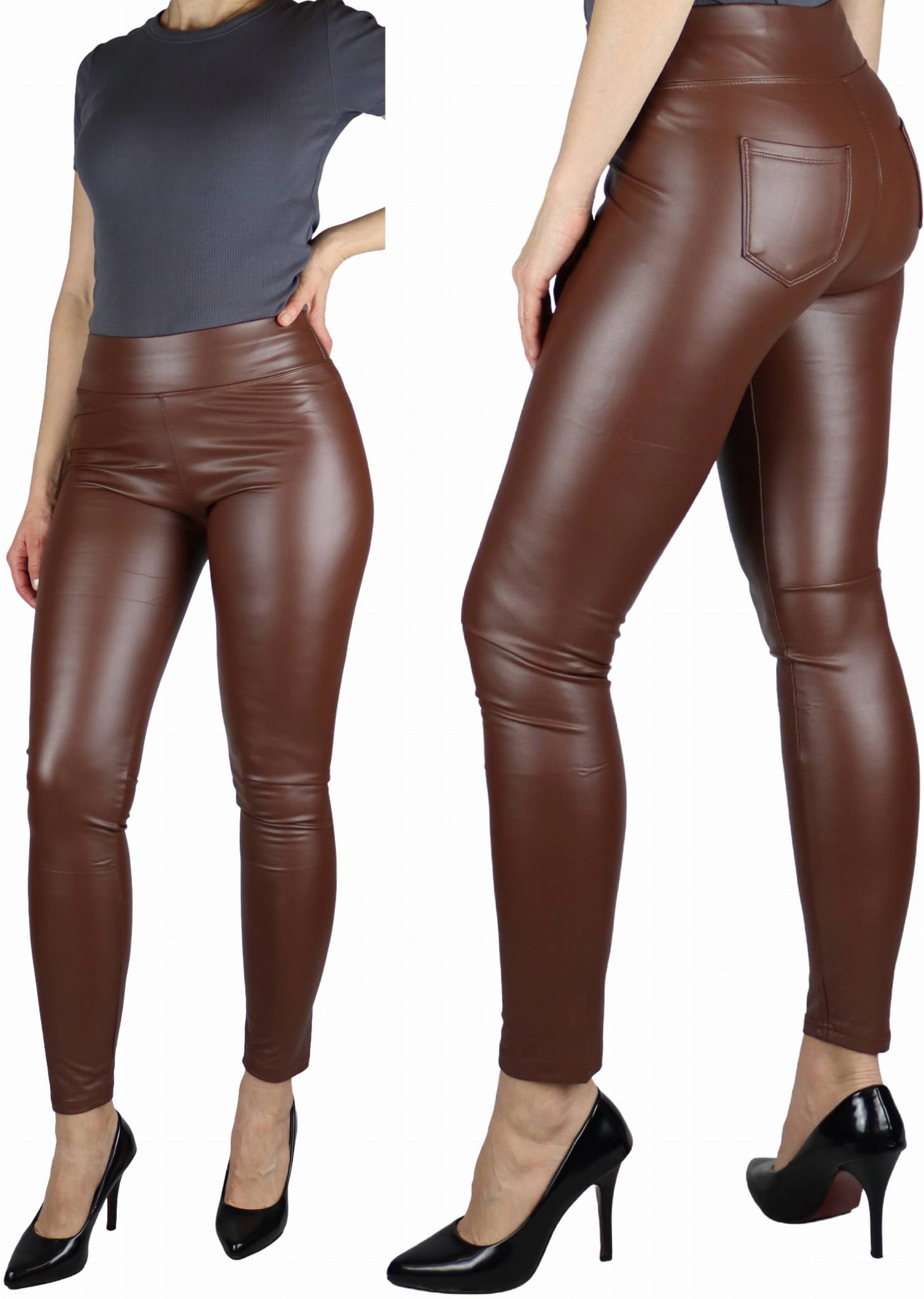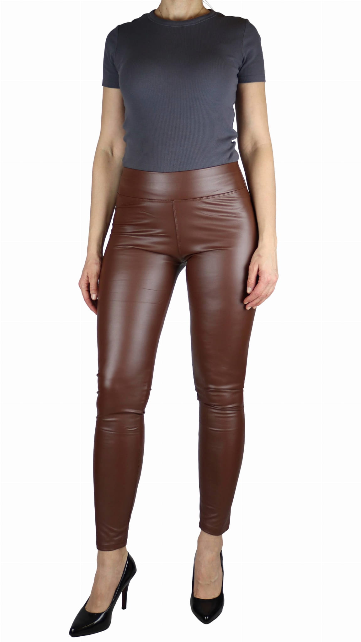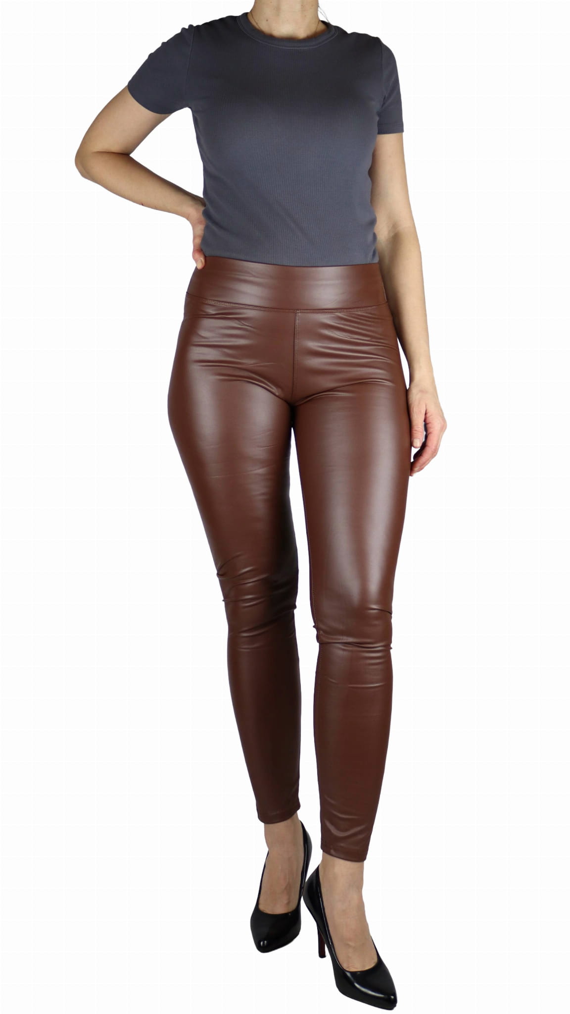 Legginsy damskie z eko skóry lekko ocieplane czekoladowy brąz (rozm. M)