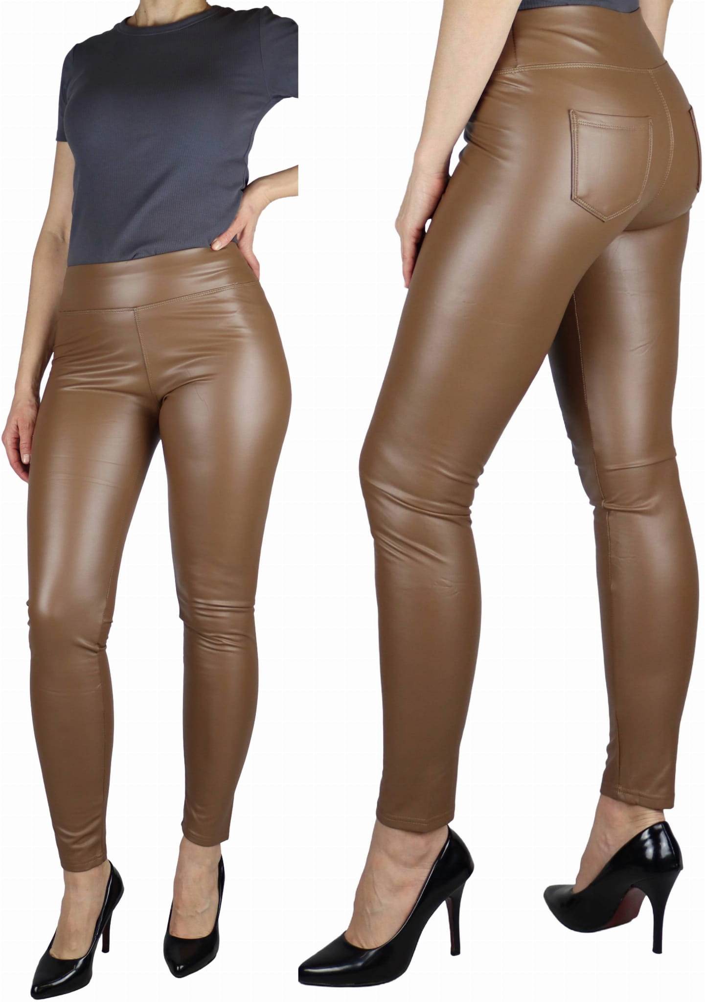Legginsy damskie z eko skóry lekko ocieplane karmel (rozm. M)
