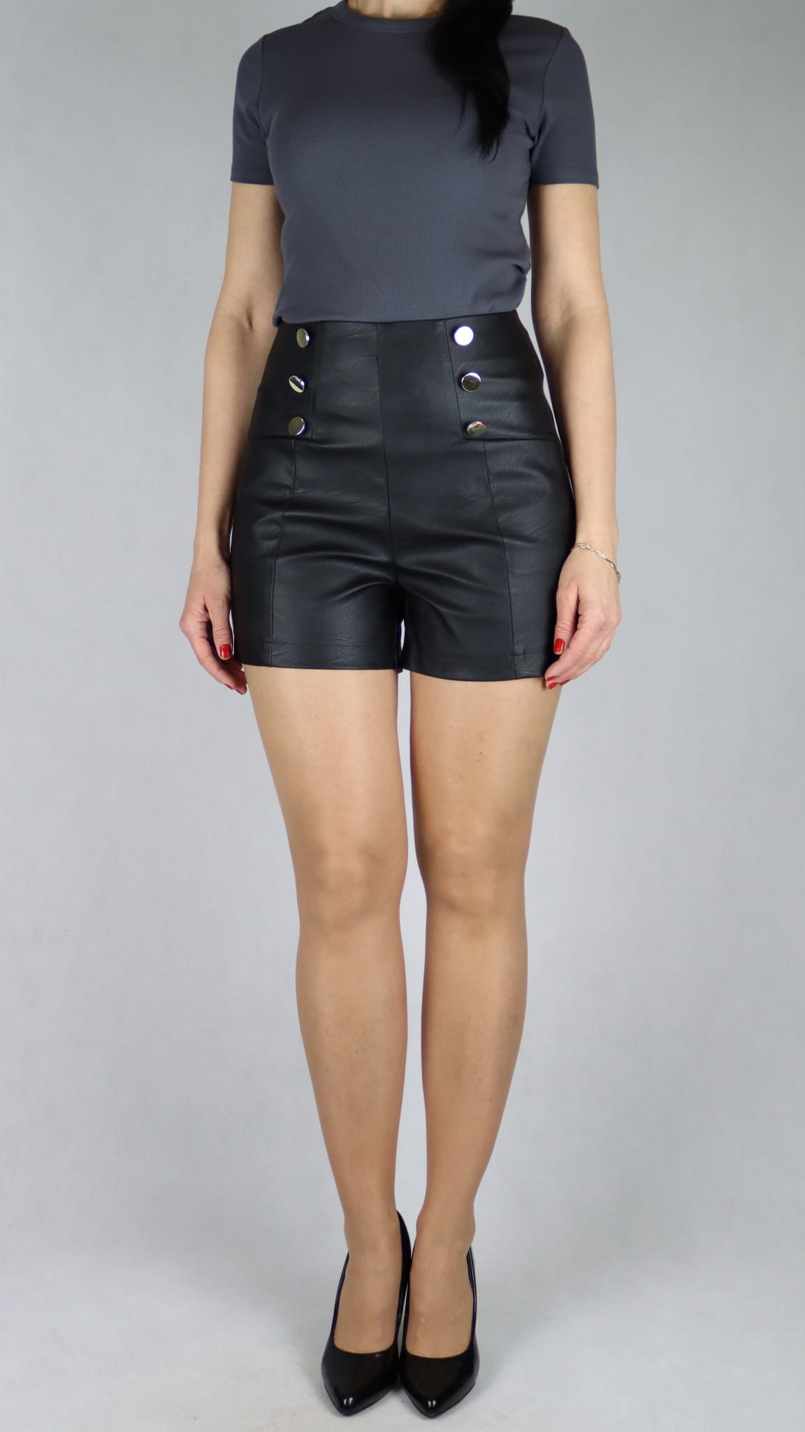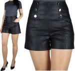 Spodenki damskie skórzane na zamek z guzikami czarne (rozm. 36-46)
