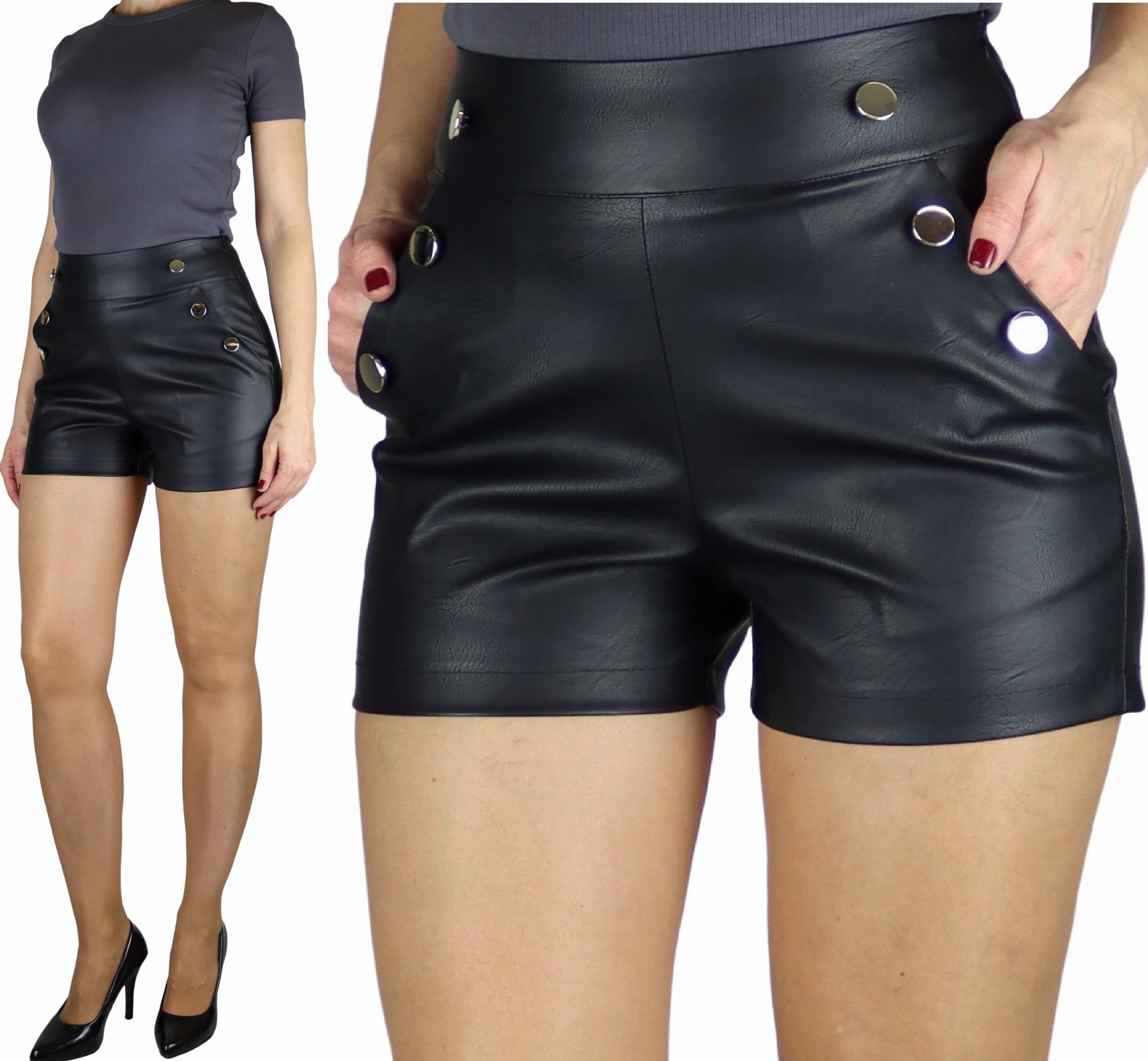 Cudowne krótkie spodenki , w całości wykonane z eko skóry.