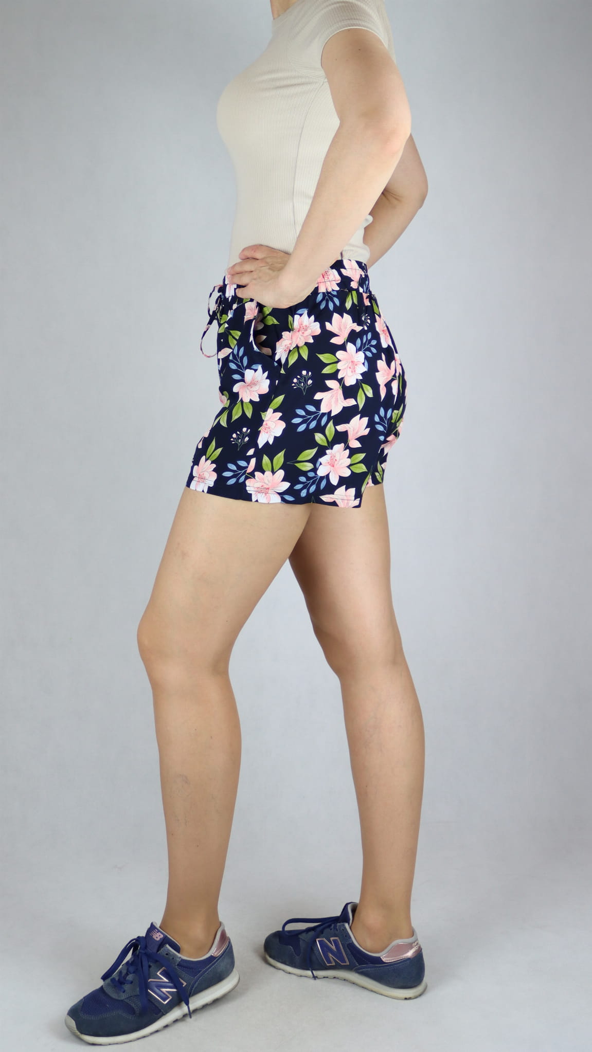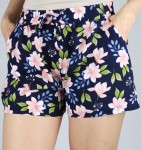 Spodenki damskie szorty luźne kieszenie kwiaty granatowe (rozm. XL)