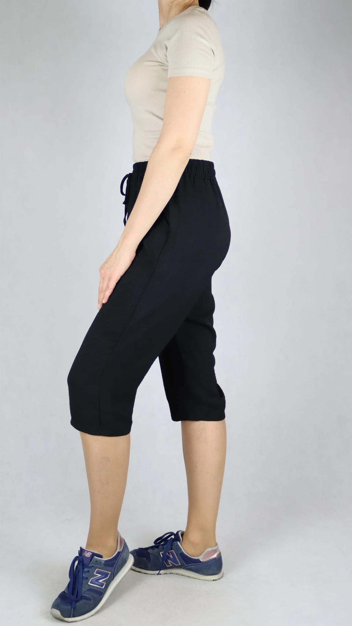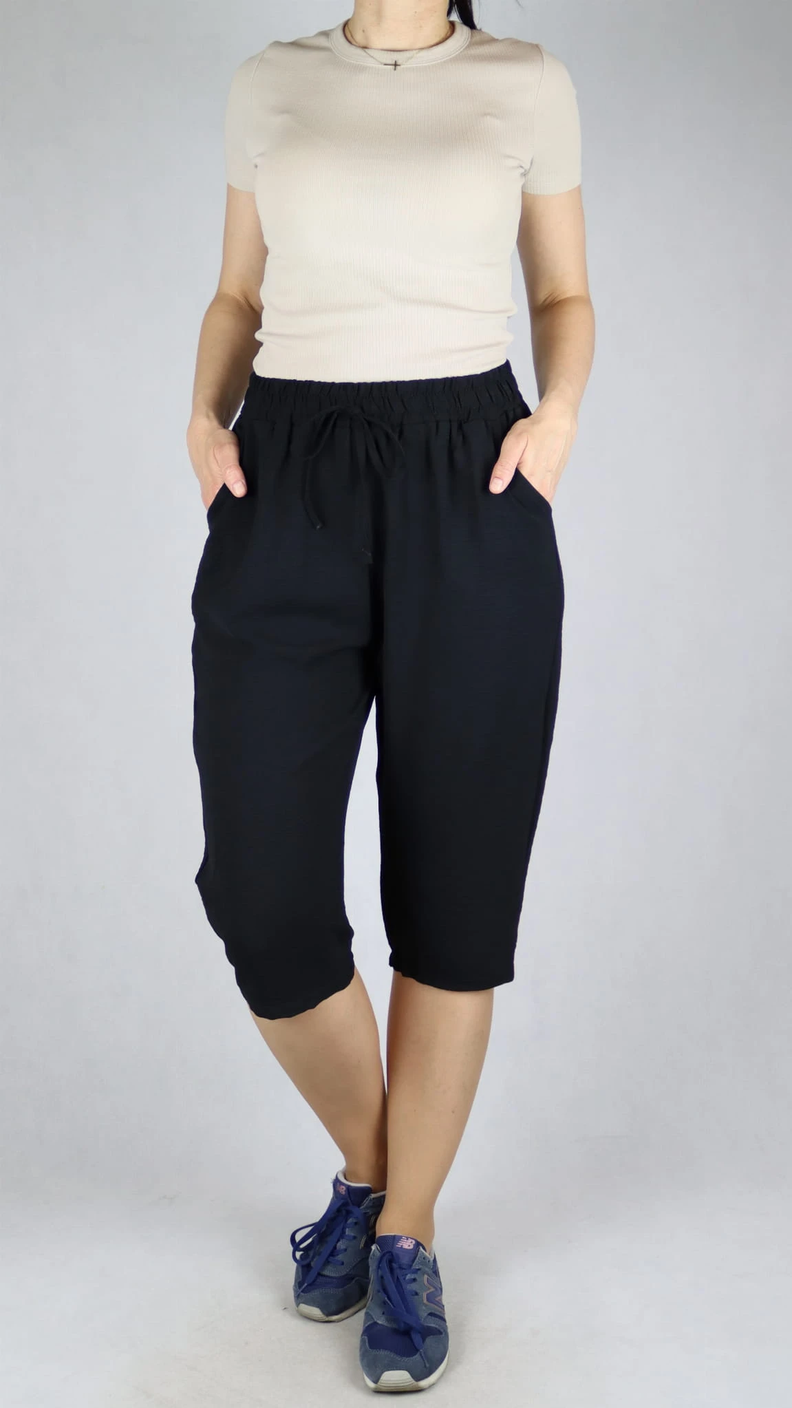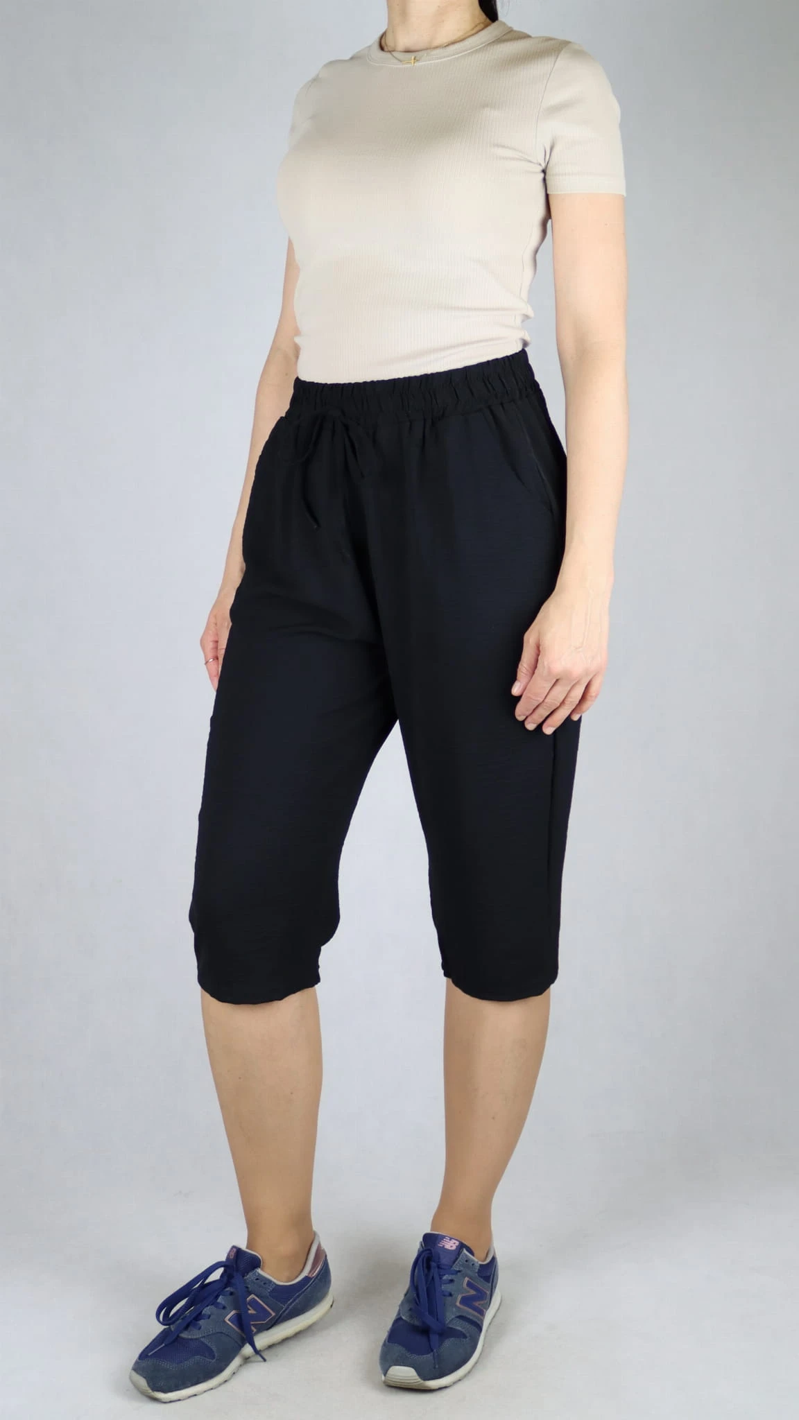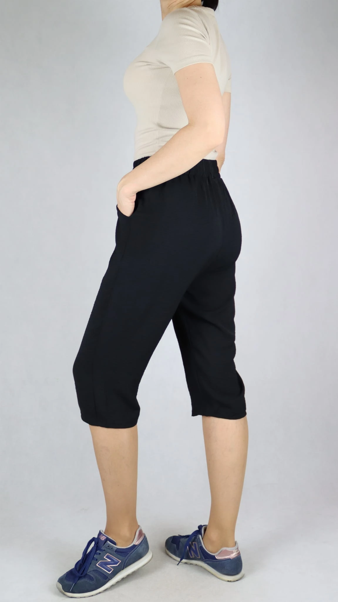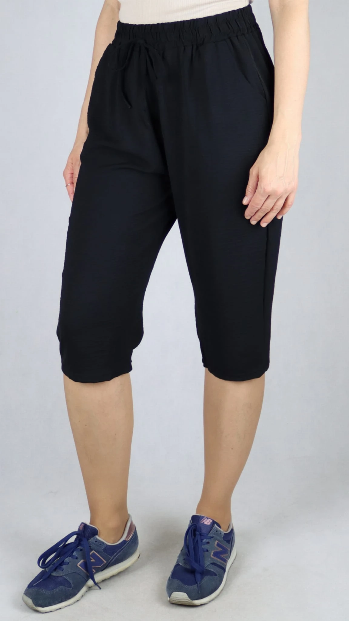 Spodnie damskie 3/4 rybaczki luźne kieszenie duże rozmiary czarne (rozm. L-5XL)
