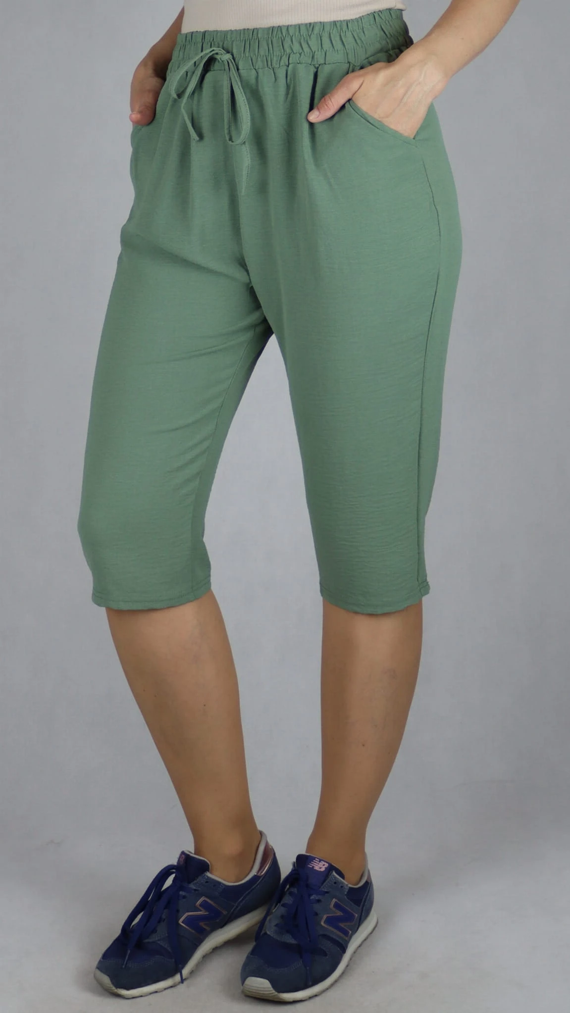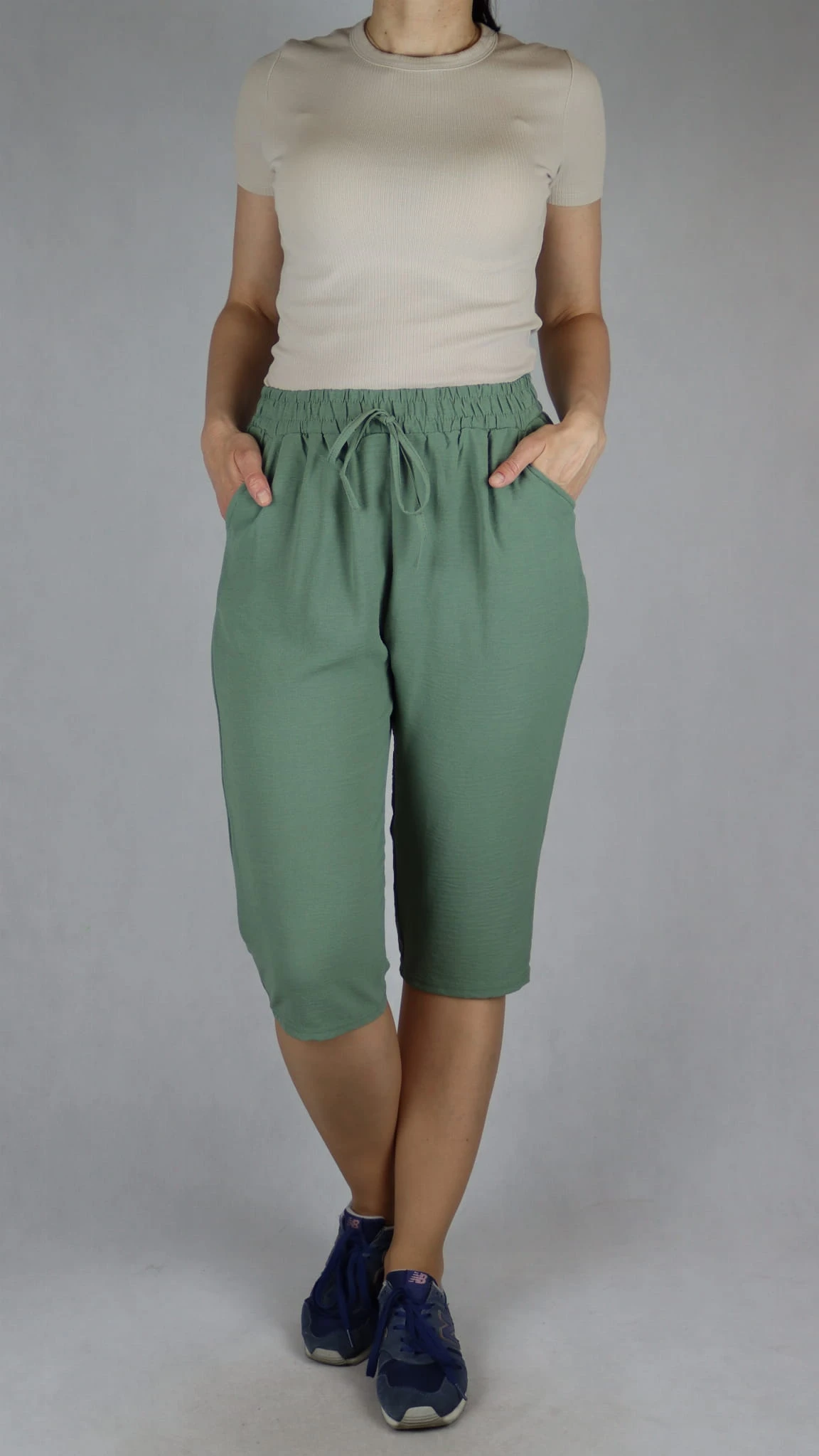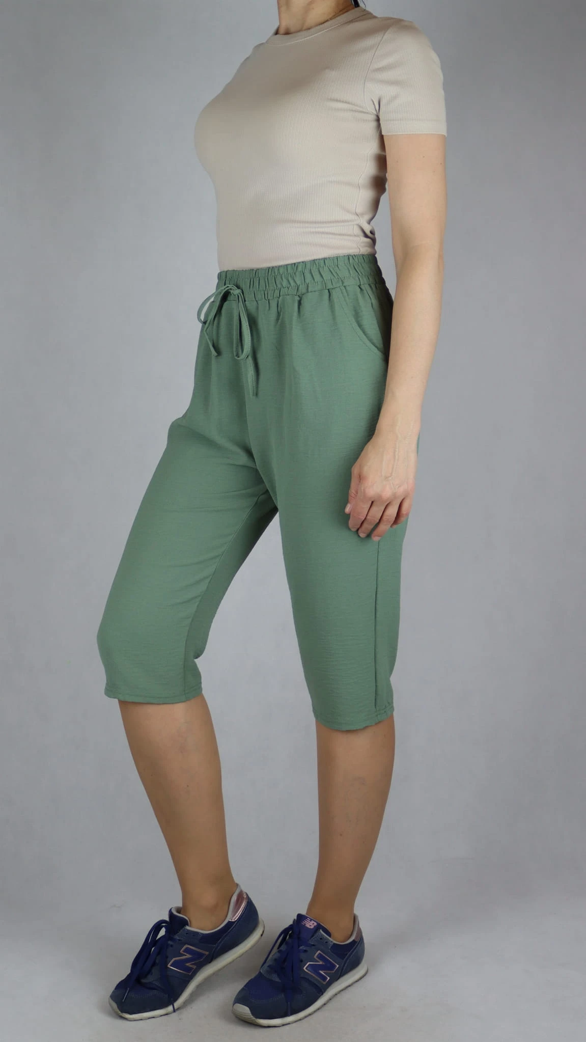 Spodnie damskie 3/4 rybaczki luźne kieszenie duże rozmiary khaki (rozm. 2XL-6XL)