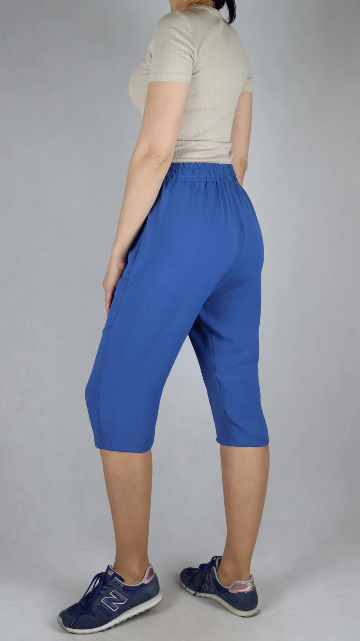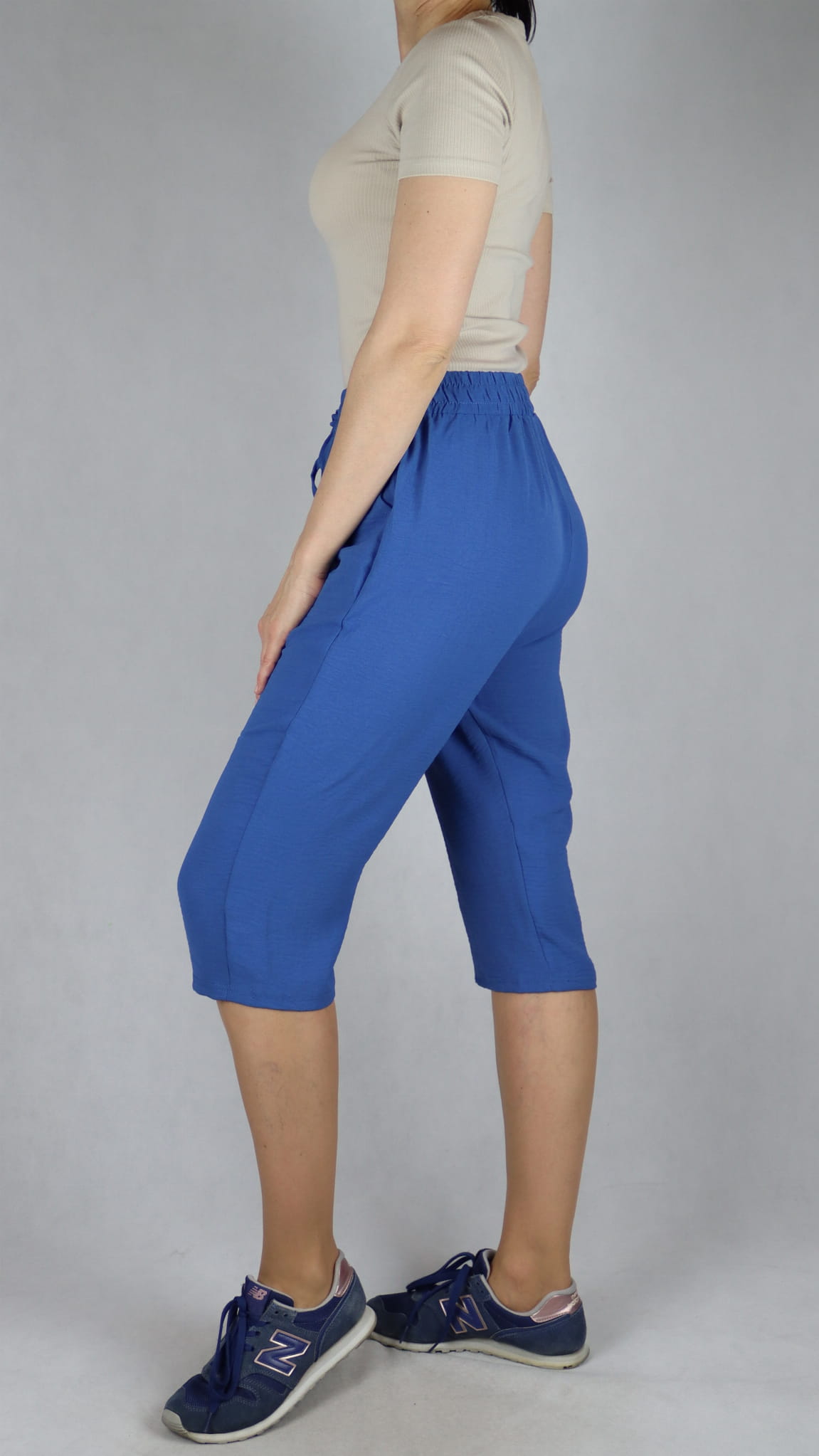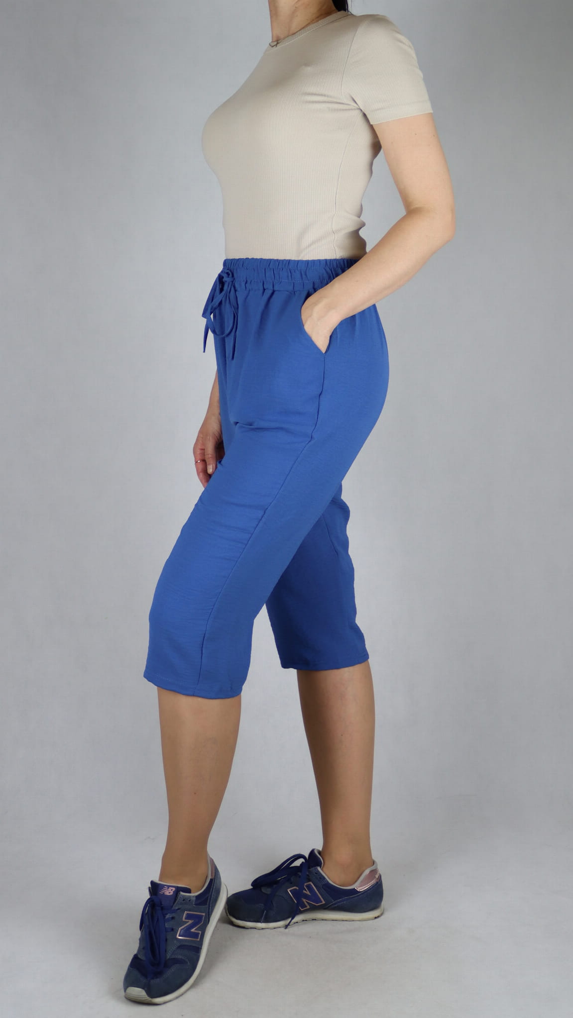 Spodnie damskie 3/4 rybaczki luźne kieszenie duże rozmiary niebieski (rozm. L-5XL)