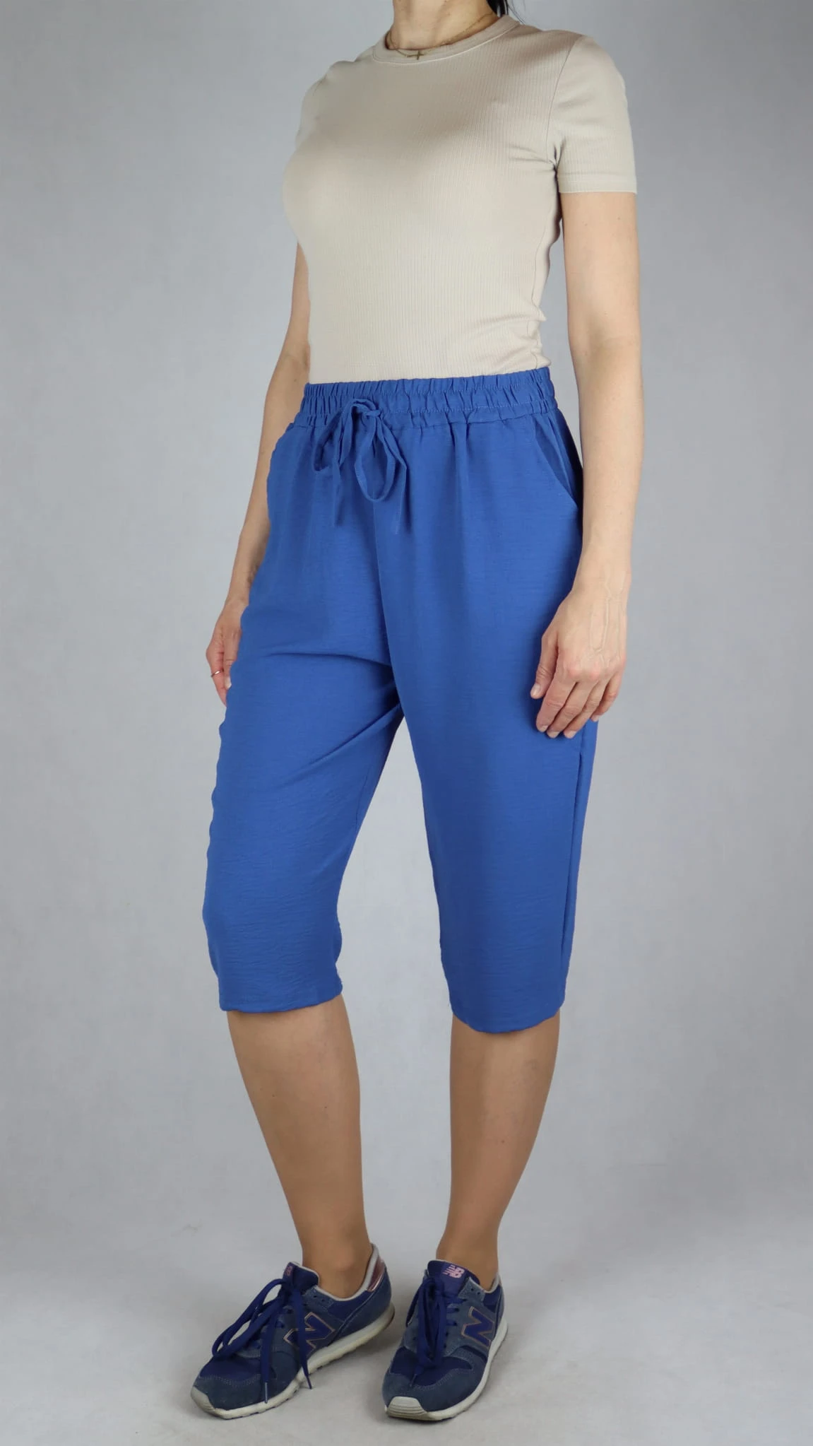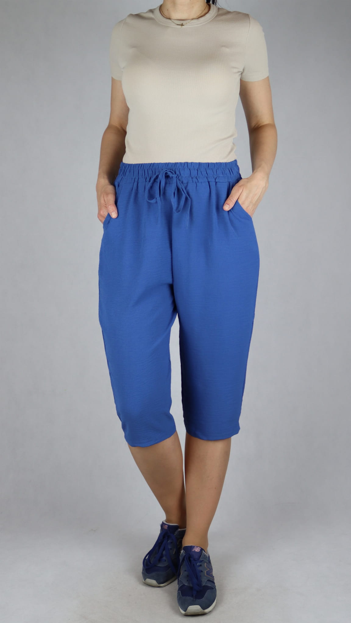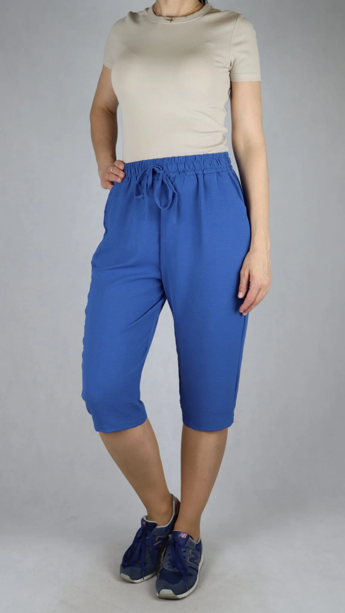 Spodnie damskie 3/4 rybaczki luźne kieszenie duże rozmiary niebieski (rozm. L-5XL)