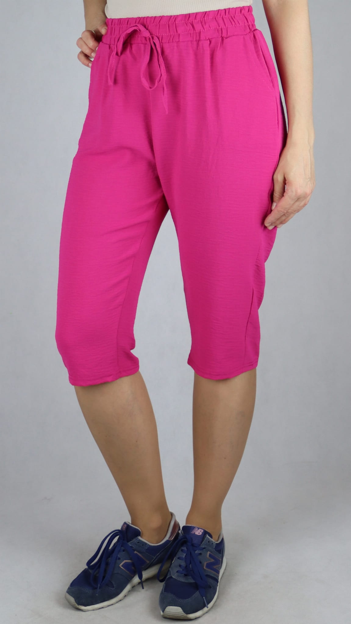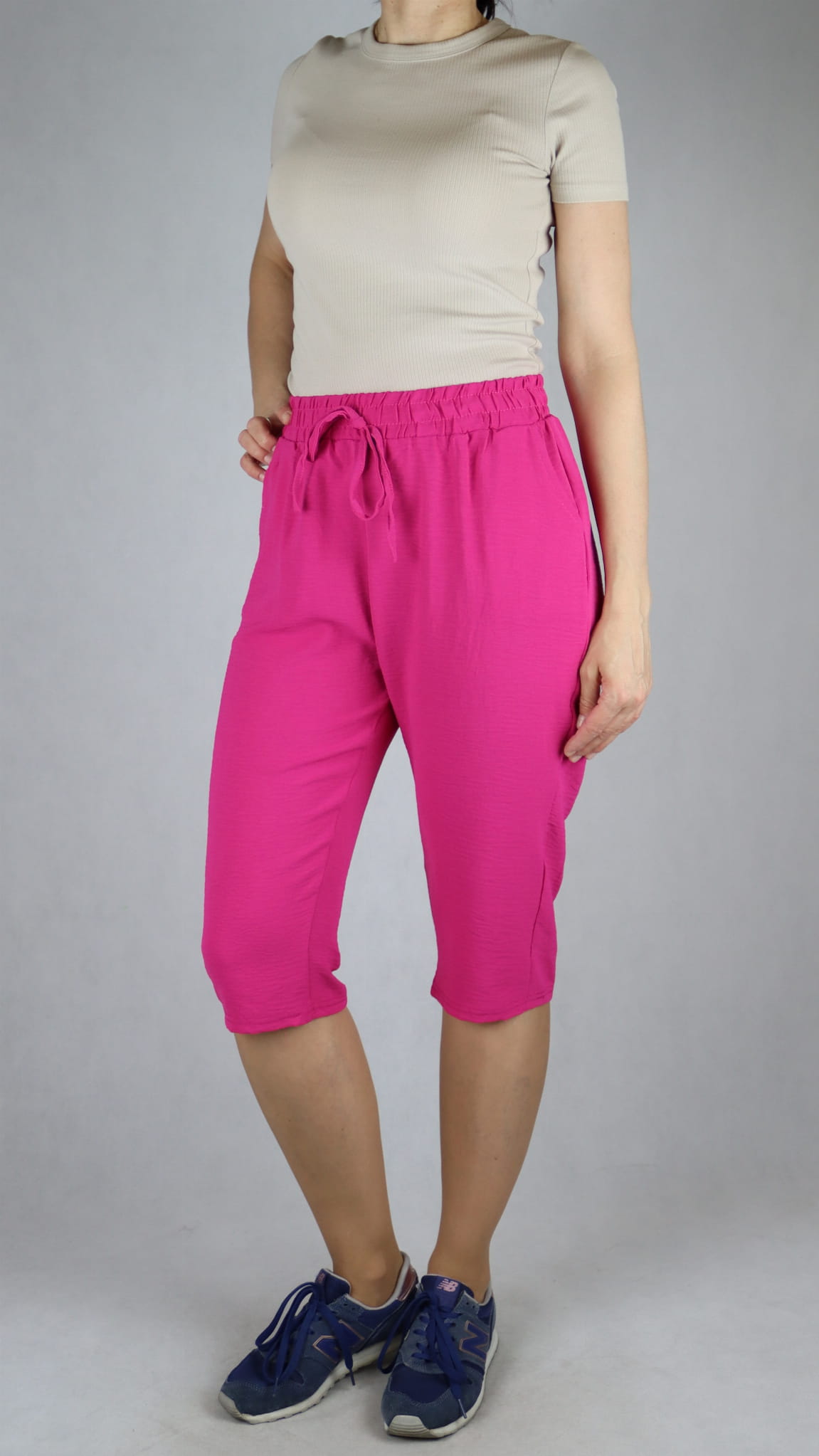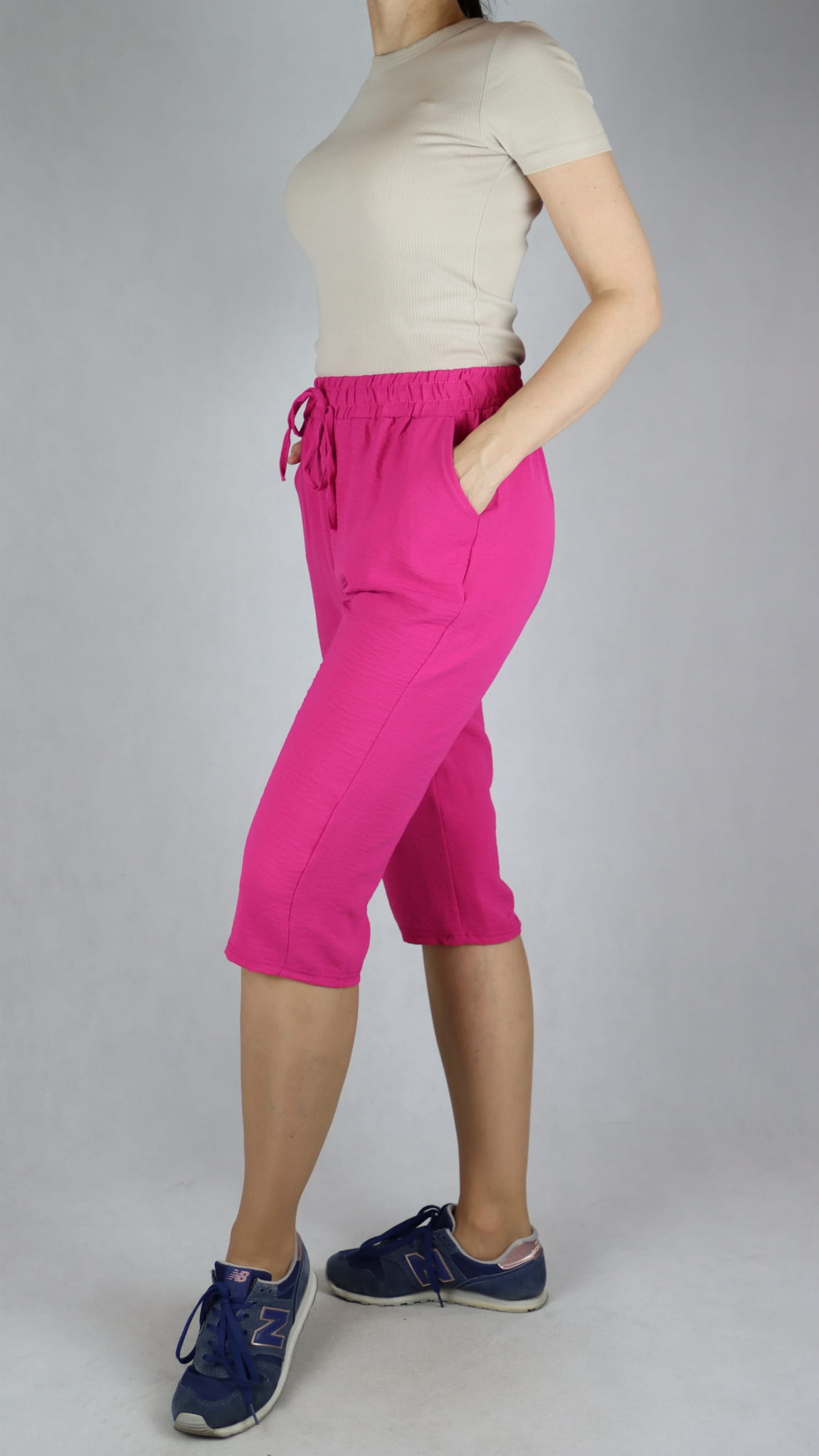 Spodnie damskie 3/4 rybaczki luźne kieszenie duże rozmiary róż (rozm. 2XL-6XL)
