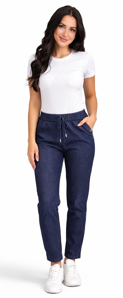 Spodnie damskie Ala Jeansy elastyczne guma w pasie duże rozmiary granatowe (rozm. 4XL-8XL)
