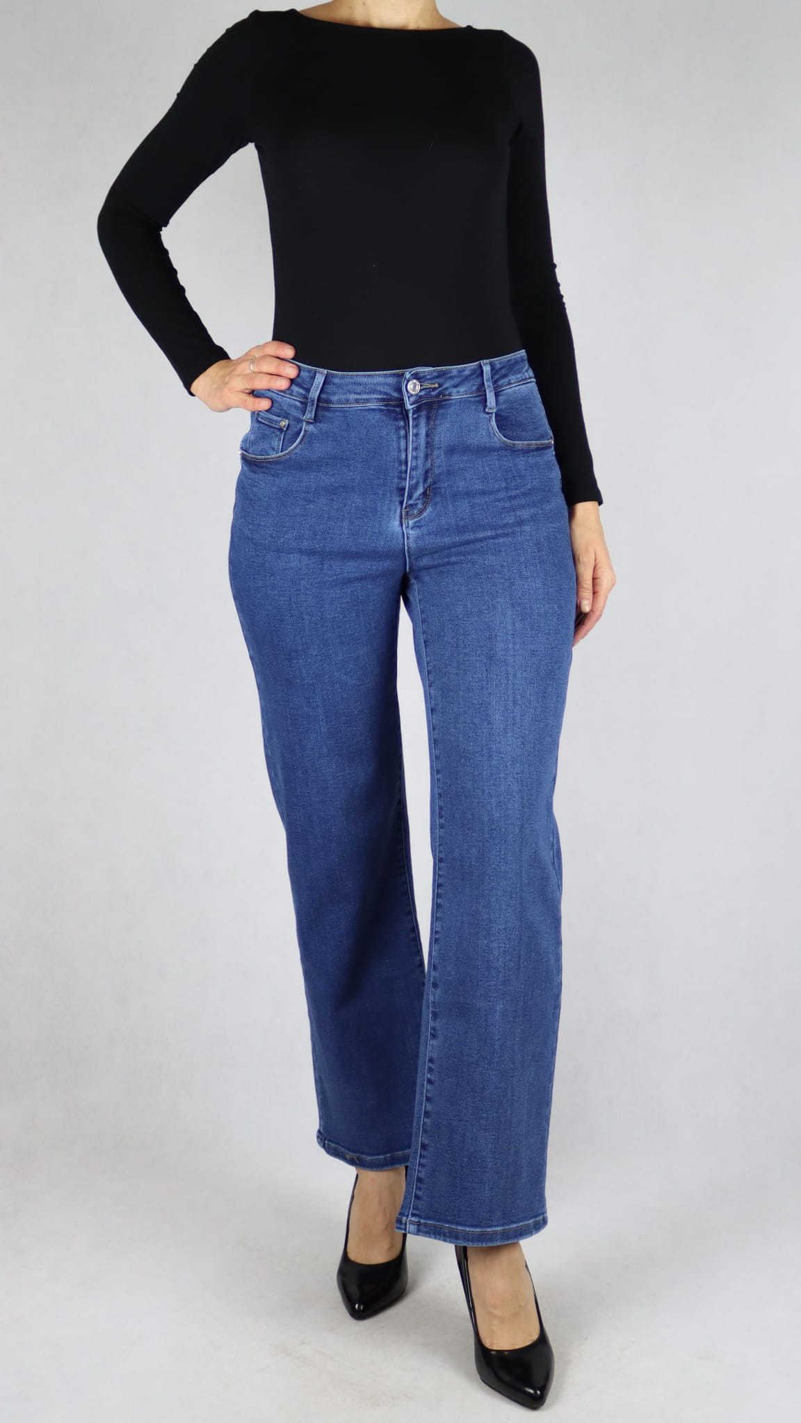 Spodnie damskie jeansy wide leg push-up szerokie nogawki (rozm. 36-44)