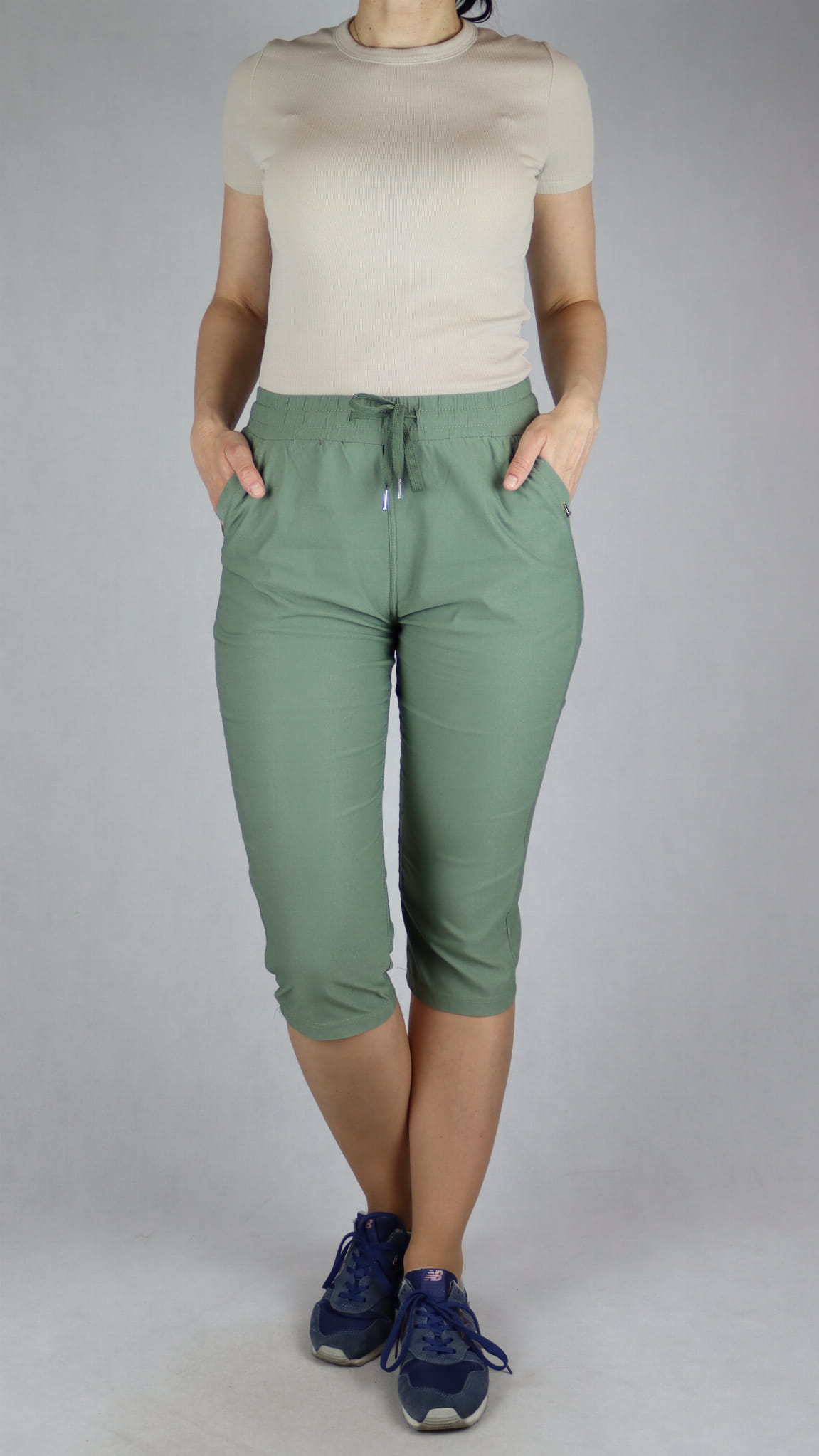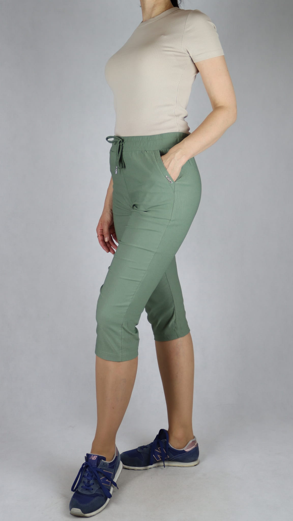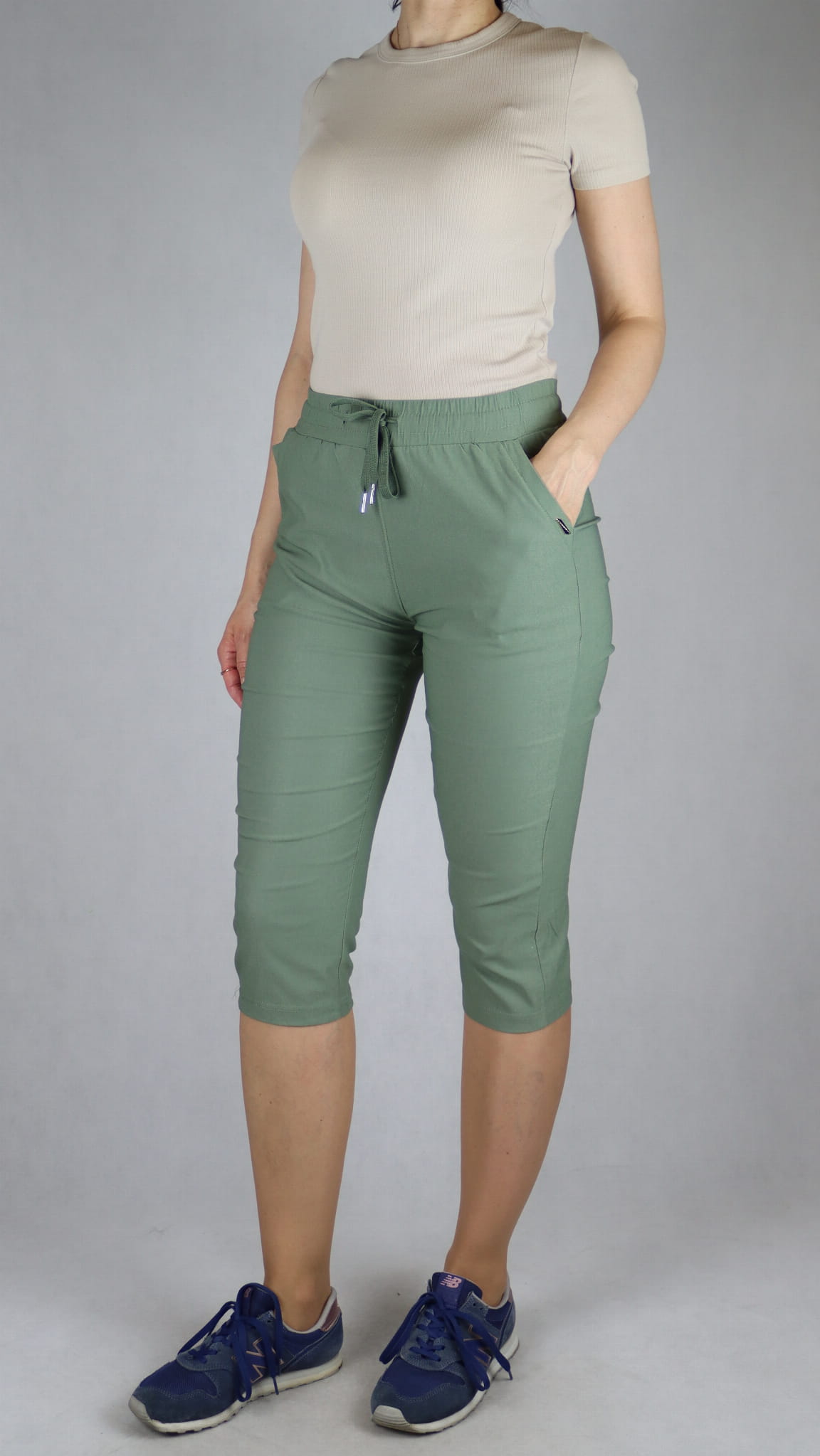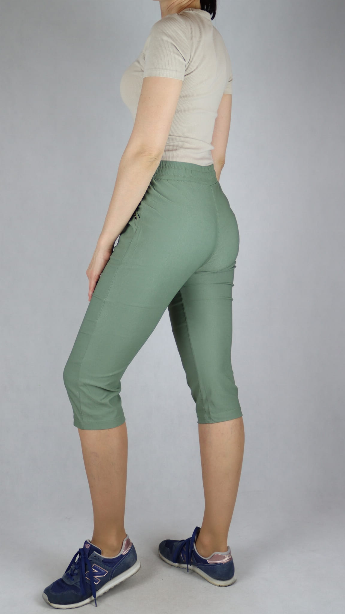 Spodnie damskie rybaczki 3/4 gumka i sznurek w talii kieszenie duże rozmiary khaki (rozm. 3XL/4XL)