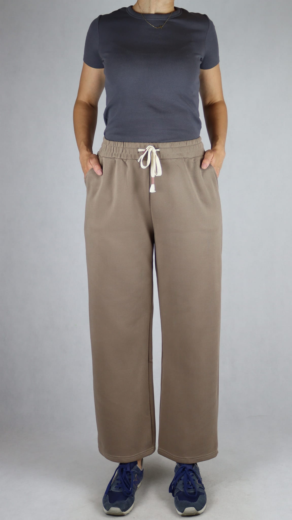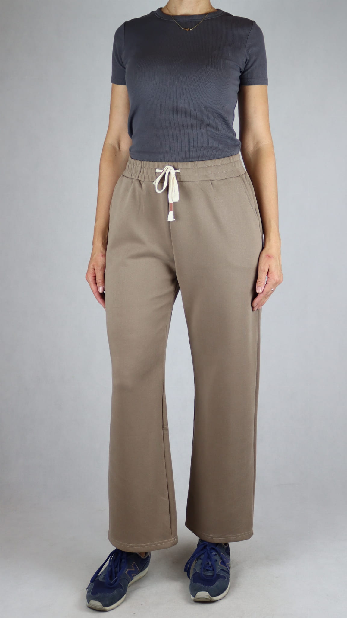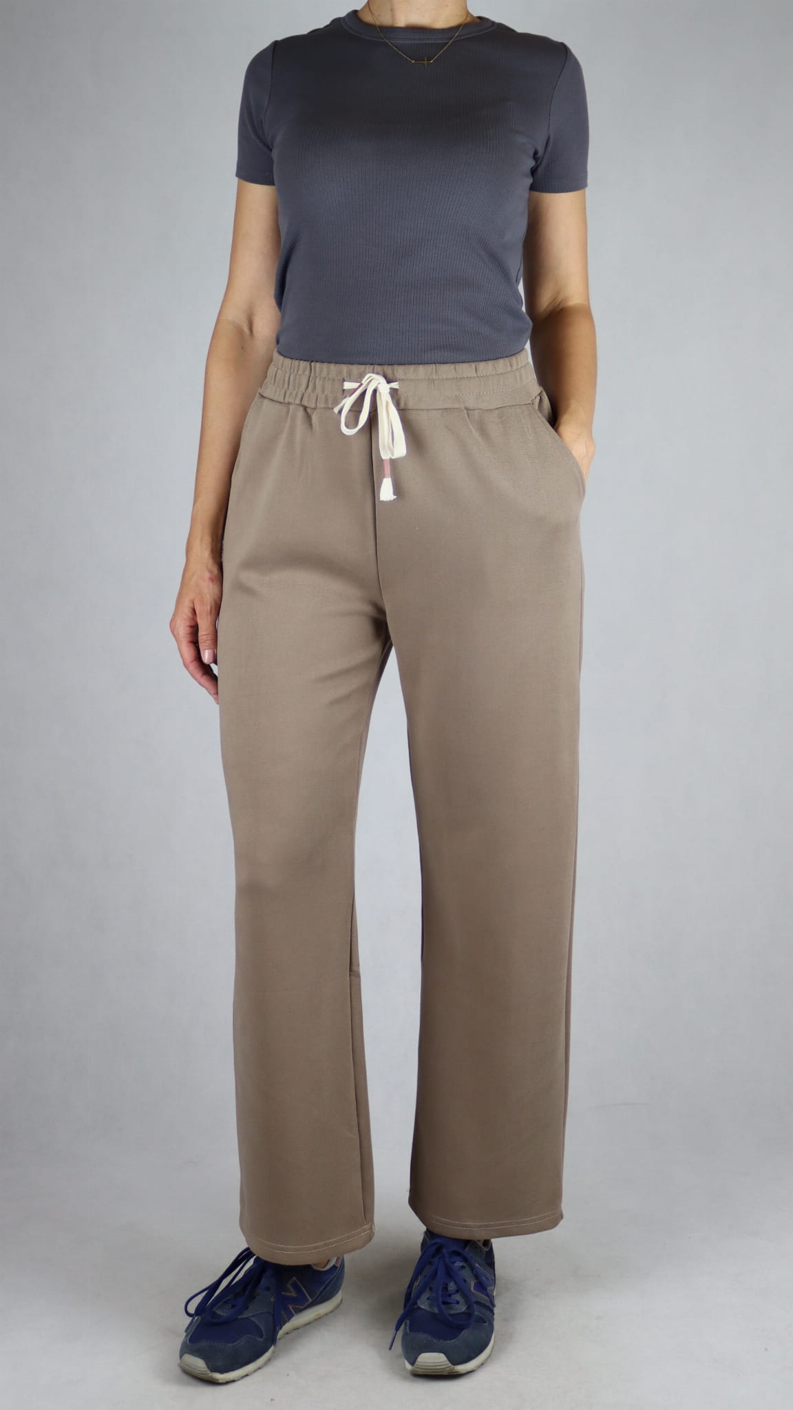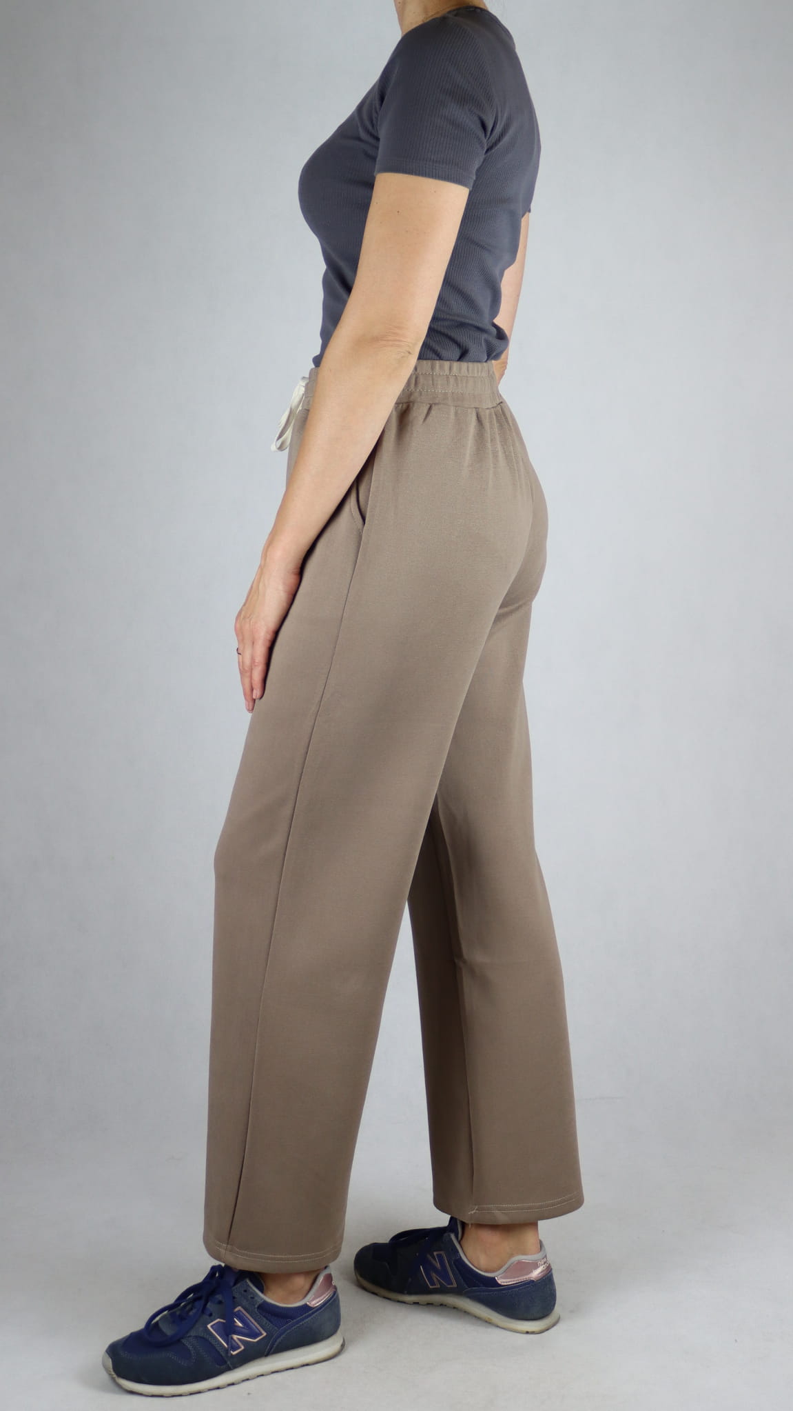 Spodnie dresowe damskie szeroka nogawka troczek beżowe (rozm. 2XL/3XL)
