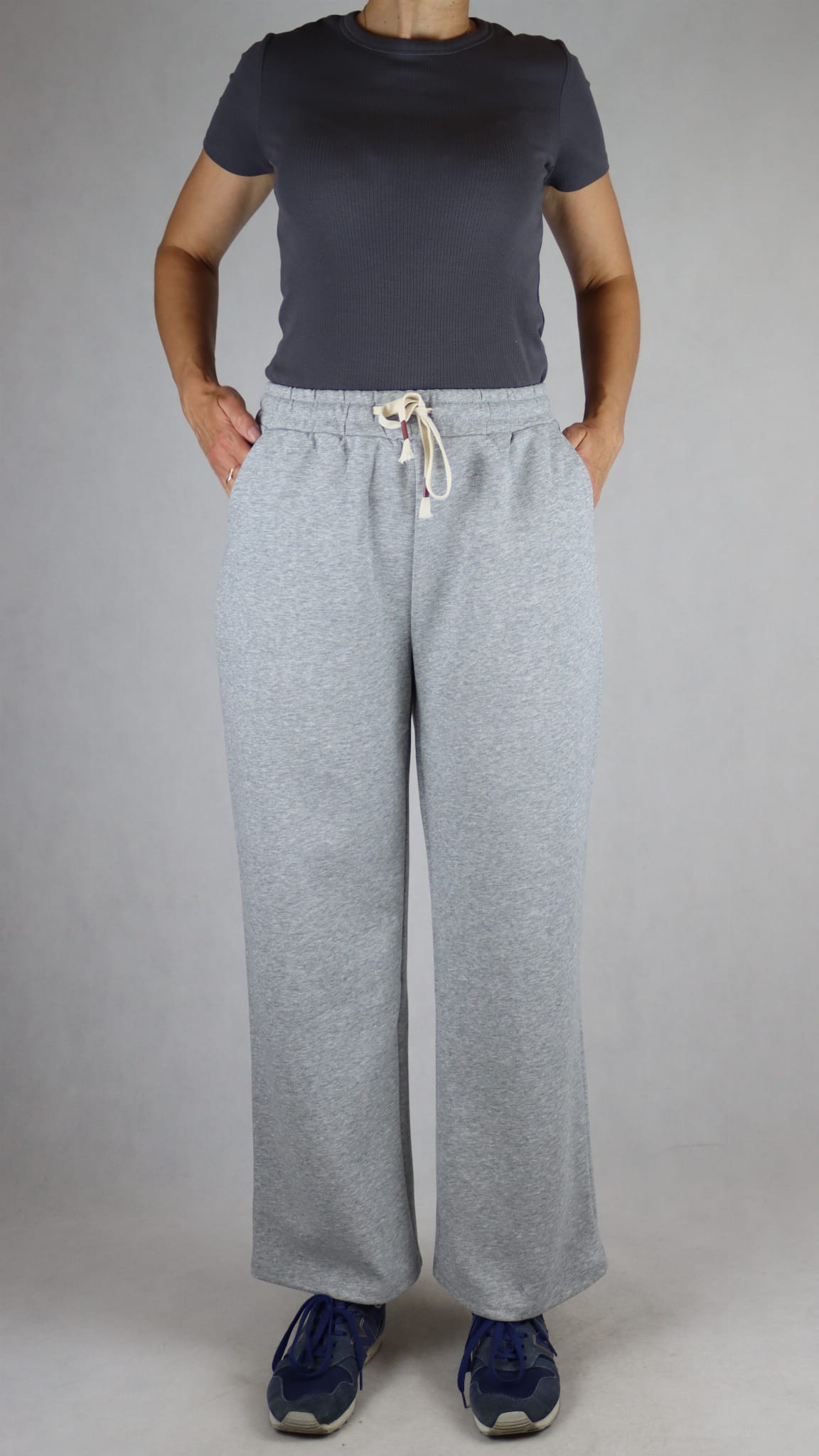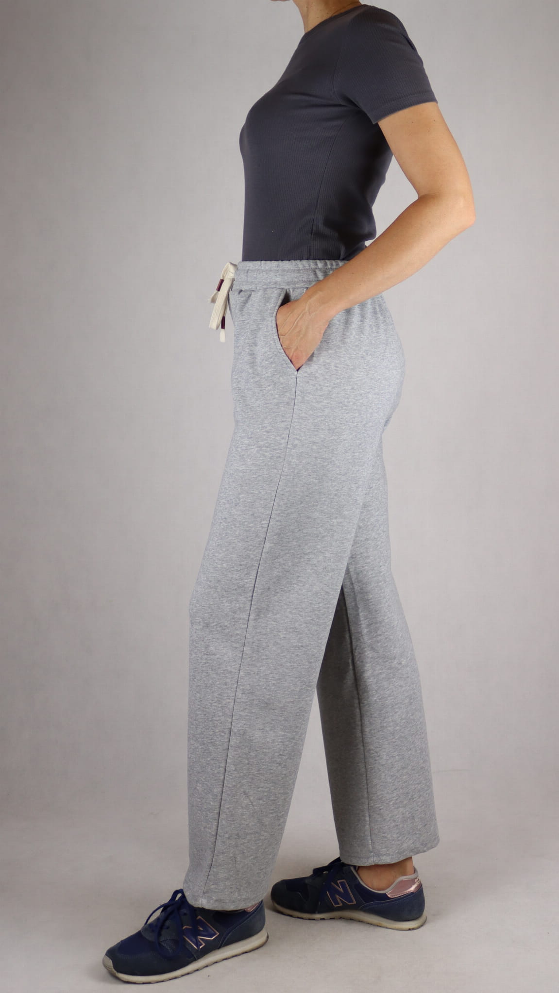 Wygodne spodnie dresowe z szeroką nogawką.