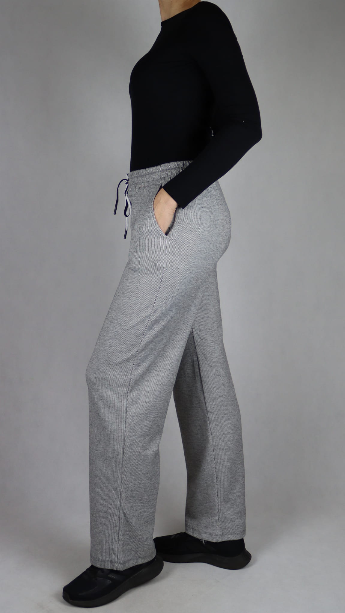 Spodnie dresowe damskie szerokie proste nogawki jasno szare (rozm. M-2XL)