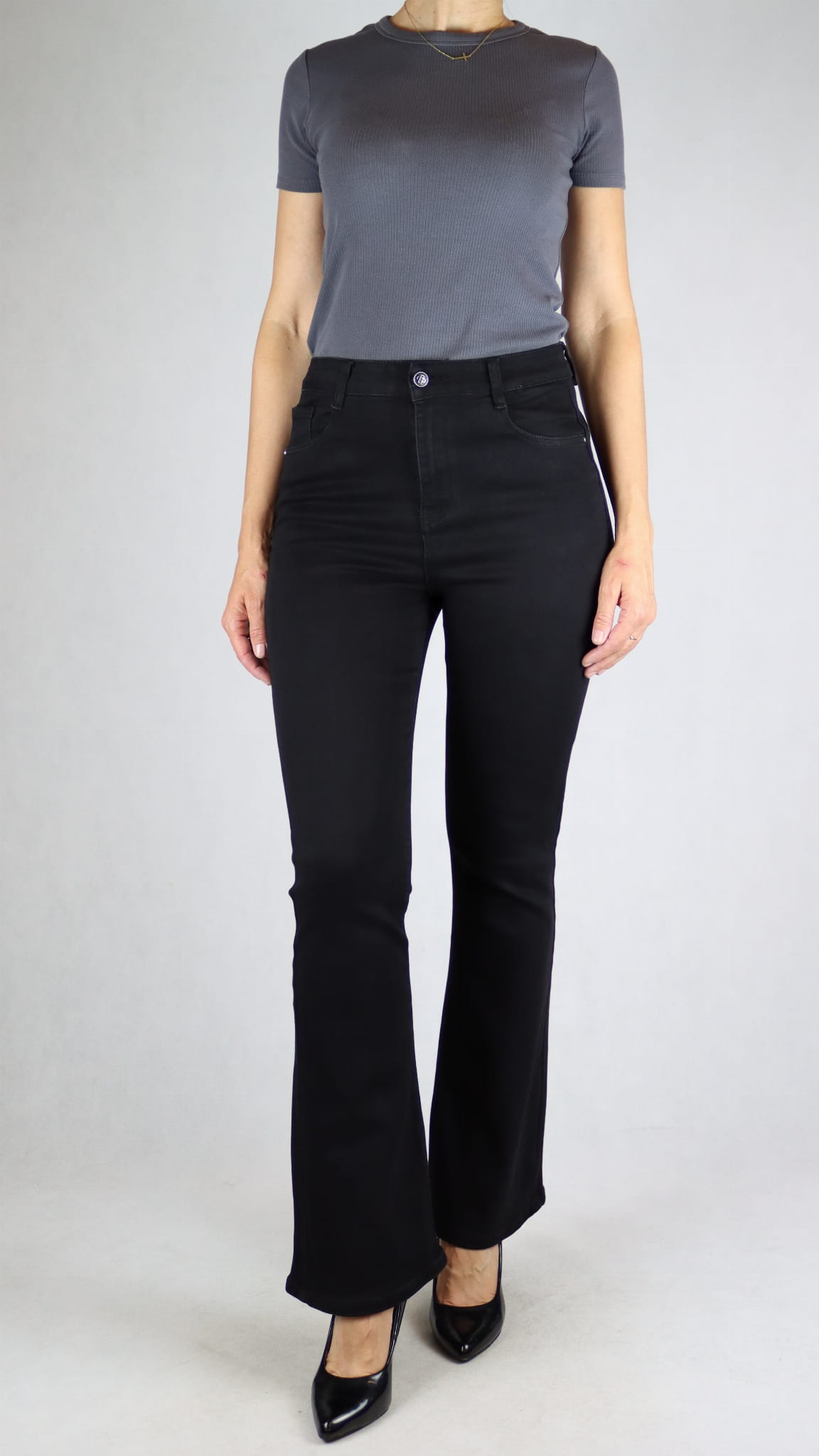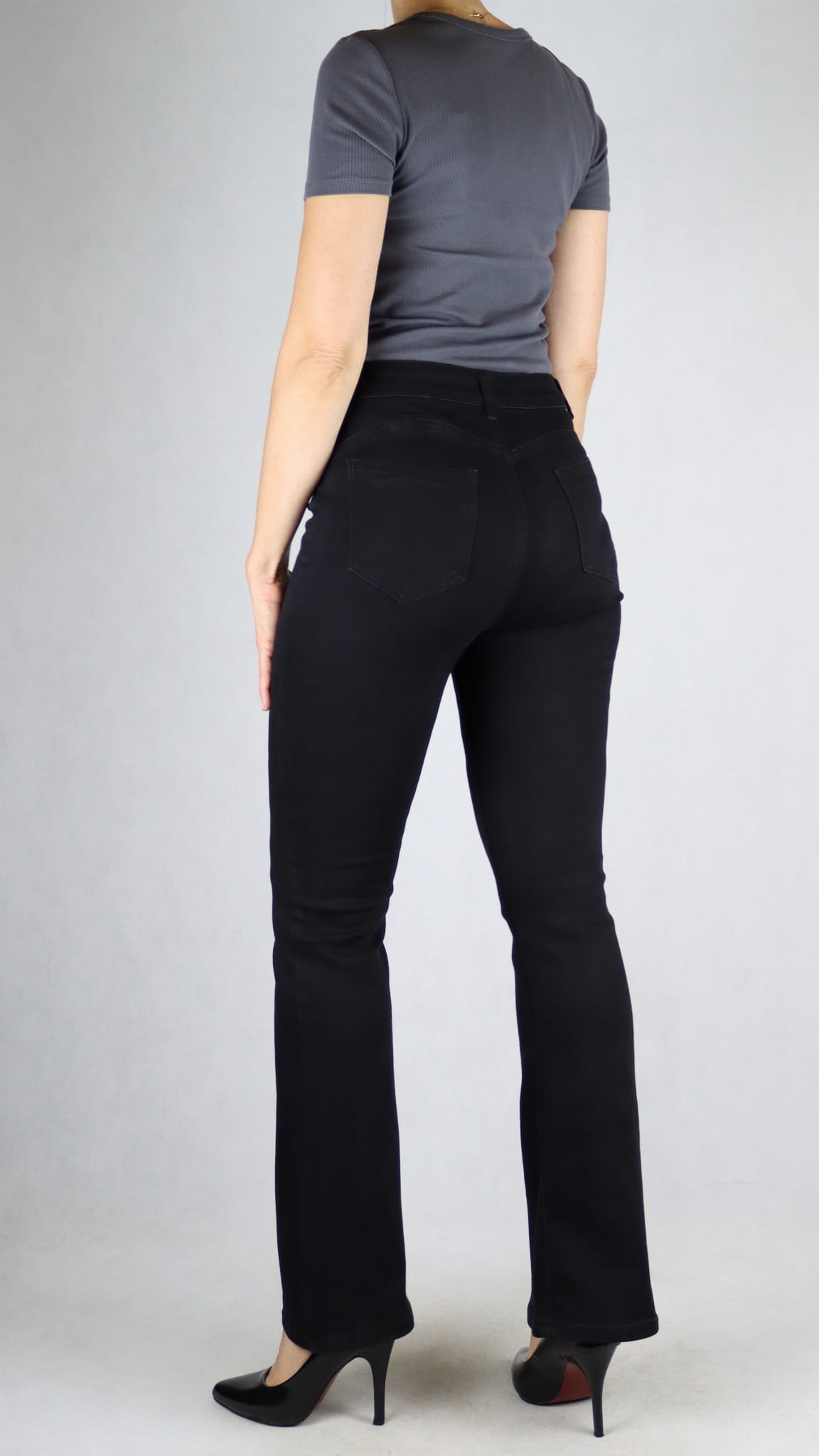 Spodnie jeansy damskie modelujące push-up dopasowane dzwony czarne (rozm. 33-35)