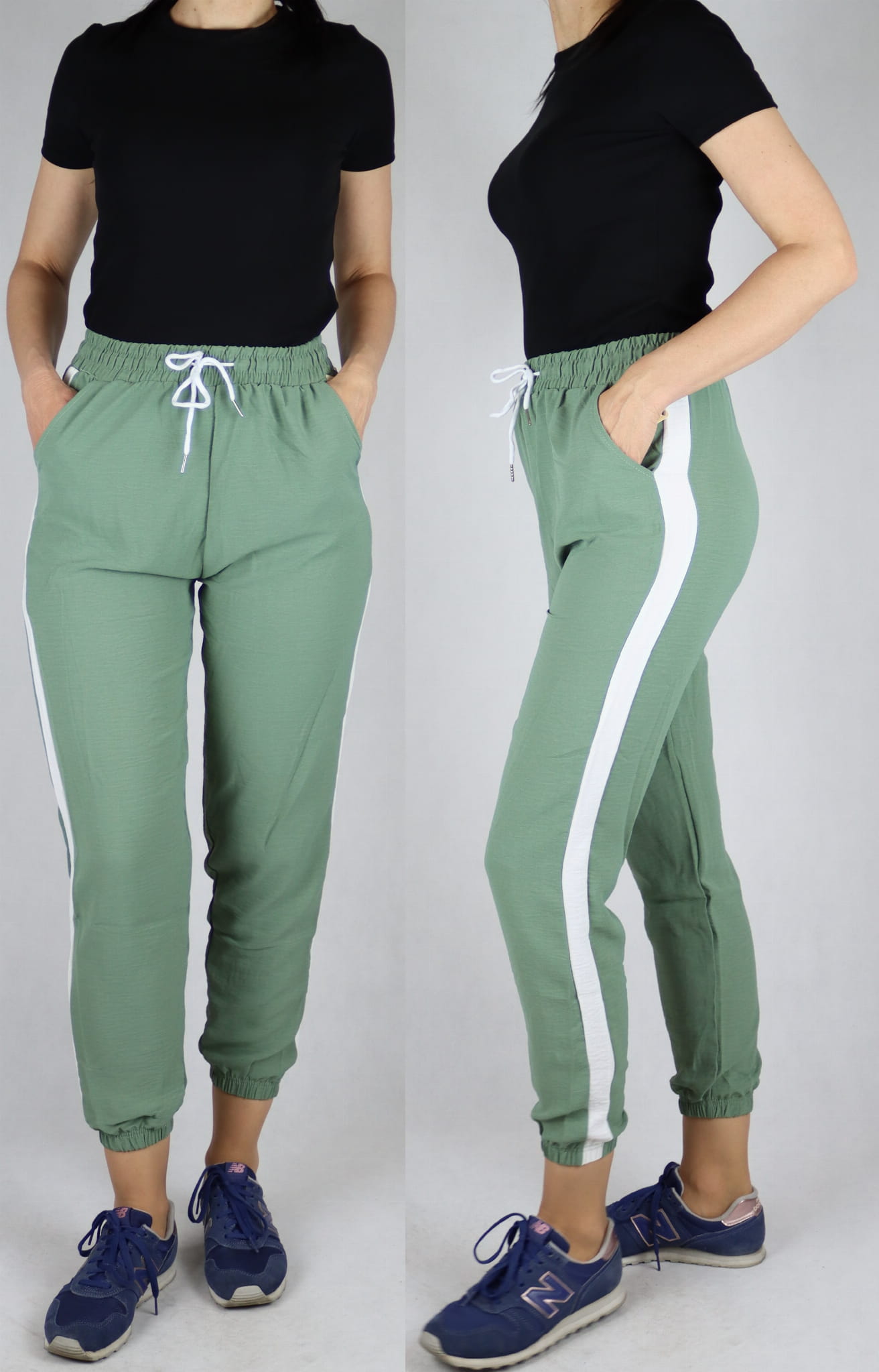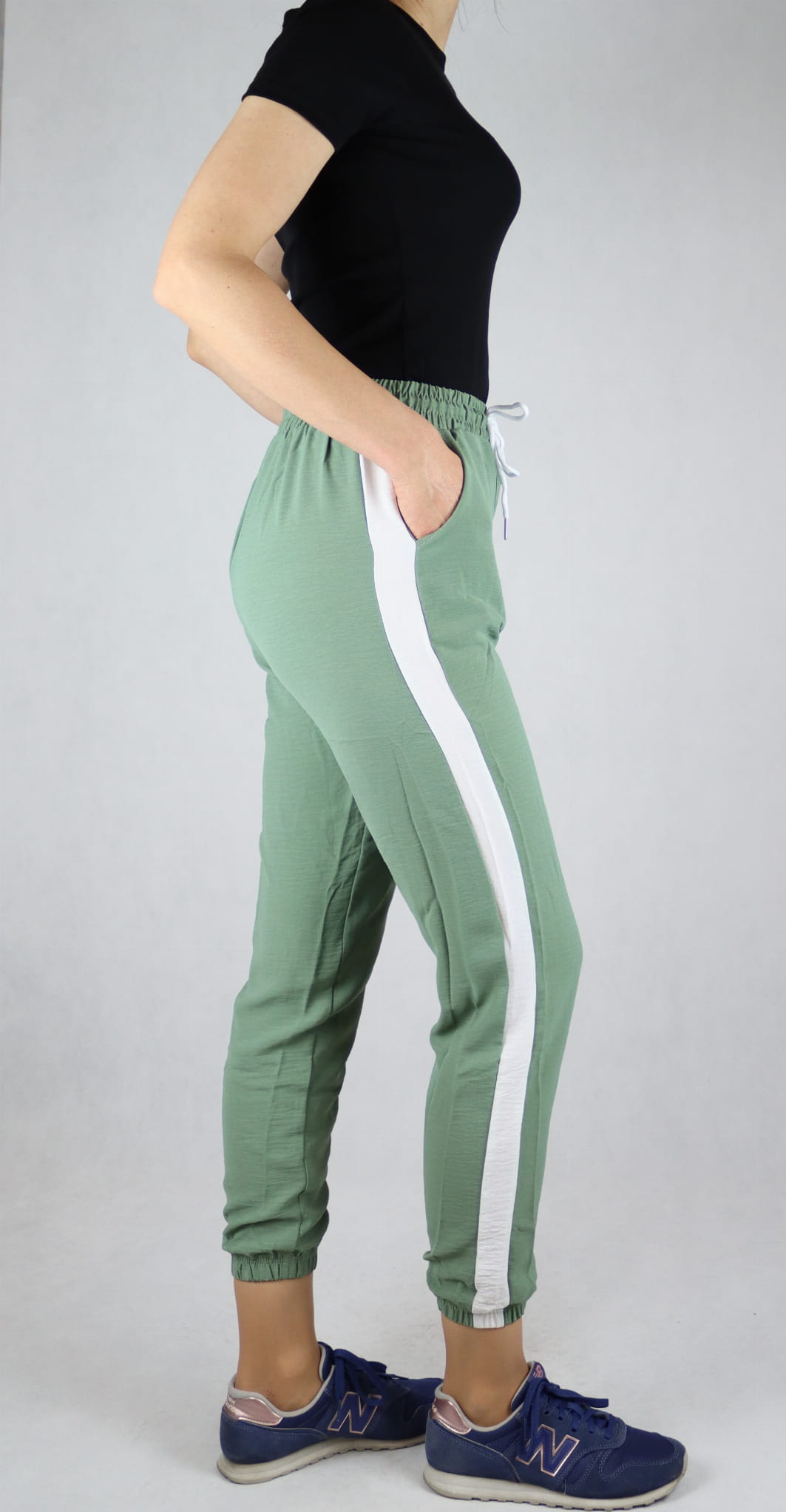Spodnie letnie dresowe z lampasem zielone (rozm. M-XL)